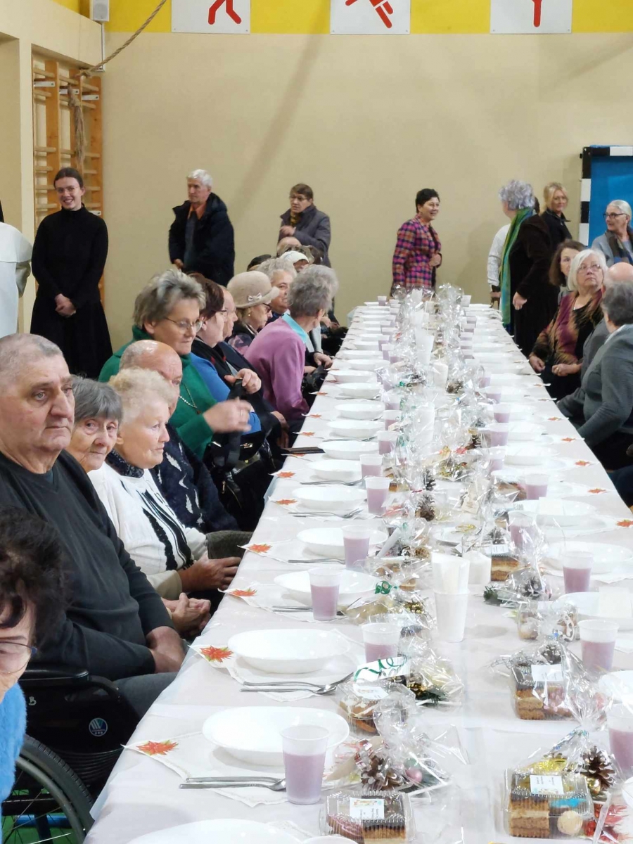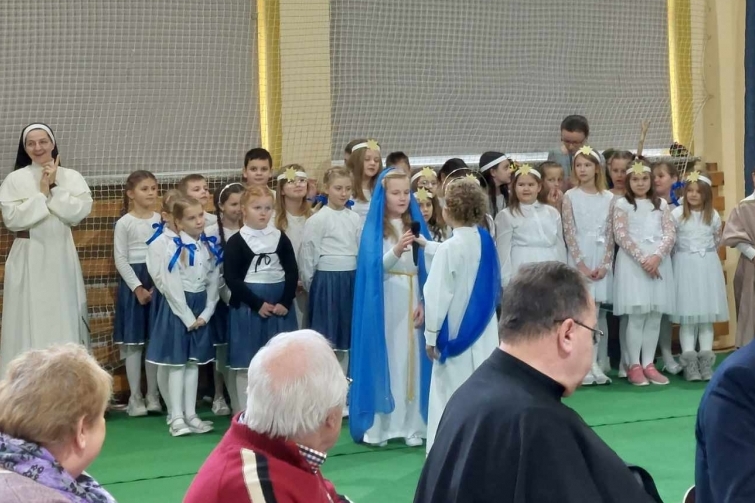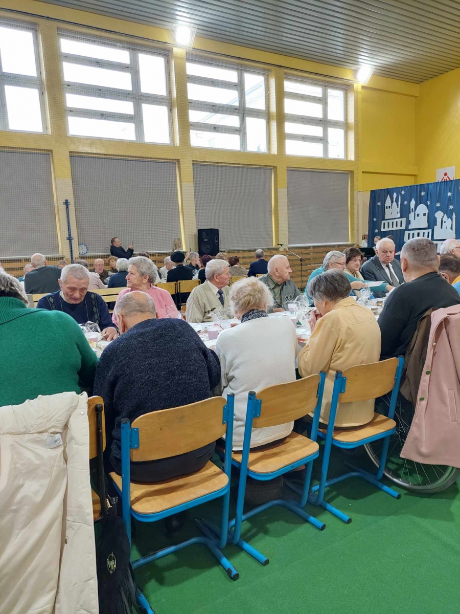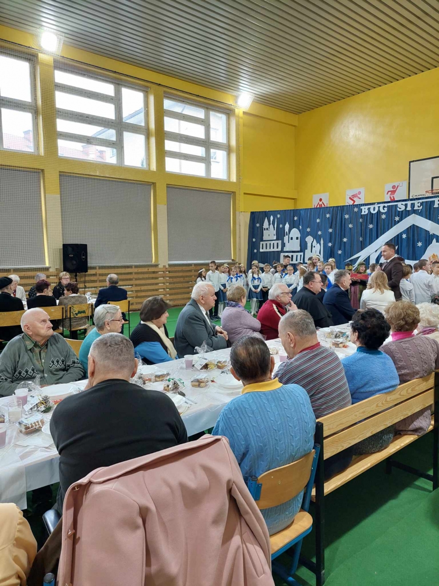 Dnia 17.12.2023 r. w Zespole Szkolno-Przedszkolnym w Białej Niżnej odbyło się coroczne spotkanie opłatkowe dla Seniorów z Sołectwa Biała Niżna. W spotkaniu uczestniczyli również mieszkańcy naszego Domu wraz z Panią Marysią. Swoją obecnością zaszczycili zebranych Seniorów m.in. Pan Wójt Gminy Grybów, Sołtys wsi Biała Niżna, Radni oraz Księża tutejszej parafii, którzy wraz z nami, mieli przyjemność obejrzenia pięknych jasełek przygotowanych przez uczniów drugiej i trzeciej klasy wraz z nauczycielami. Po występach Ksiądz Proboszcz pobłogosławił opłatki, którymi wszyscy się połamali, składając sobie świąteczne życzenia. Po chwili zadumy i kolędowania Panie z Koła Gospodyń Wiejskich z Białej Niżnej zaprosiły na wigilijny obiad. Składamy serdeczne podziękowania za zaproszenie.