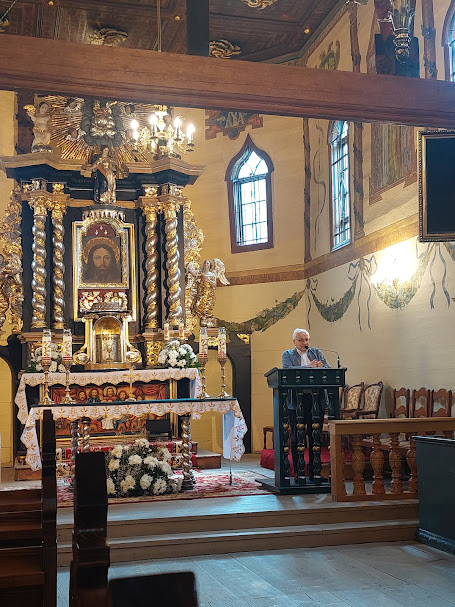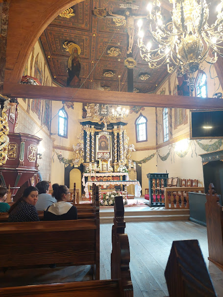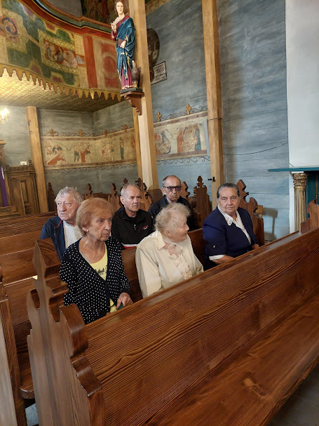 W piątek 18 lipca br., na zaproszenie Pani Kierownik i uczestników WTZ w Siołkowej, wybraliśmy się na wspólną wycieczkę do Krużlowej. W pierwszej kolejności udaliśmy się do Krużlowej Wyżnej, aby podziwiać zabytkowy drewniany kościół z XVI w. pw. Narodzenia NMP - w ostatnim czasie gruntownie odnowiony. Historię kościoła opowiedział nam kustosz tego miejsca - Ks. Proboszcz Marek Szewczyk. Następnie, po zwiedzeniu kościoła, odwiedziliśmy w Krużlowej Niżnej filię Gminnej Biblioteki Publicznej, która od stycznia 2024 roku działa w nowo wybudowanej siedzibie. Pani Grażyna Gołyźniak, prowadząca tę placówkę, opowiedziała nam o jej powstaniu i przybliżyła jej historię oraz poczęstowała słodkościami.