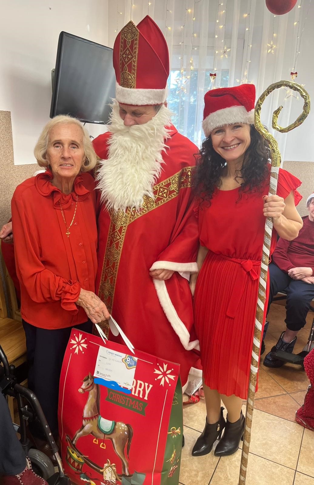 Dnia 8 grudnia br. w naszym Domu odbył się finał akcji "Święty Mikołaj dla Seniora". W tym roku nasza placówka po raz drugi wzięła udział w akcji Fundacji. Mieszkańcy byli zachwyceni otrzymanymi paczkami, które kryły spełnienie ich osobistych marzeń. W każdym prezencie znalazło się coś, o czym marzyła konkretna osoba, a wszystko to dzięki wspaniałym Mikołajom z całego świata.